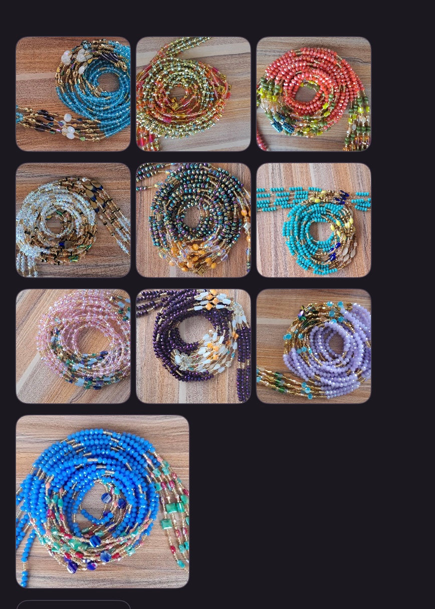 Waist beads are strings of beads that are worn around the waist or hips. They come in single strands or multiple strands that are worn together. They come in different colors and may also include decorative stones, crystals, or charms.